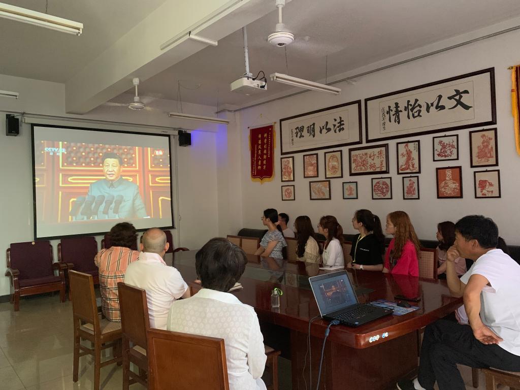 7月1日上午8时,yl23411永利集团官网院党委在开发区校区815会议室组织师生代表通过新华网集中收看庆祝中国共产党成立100周年庆祝大会,认真学习习近平总书记“七一”重要讲话。