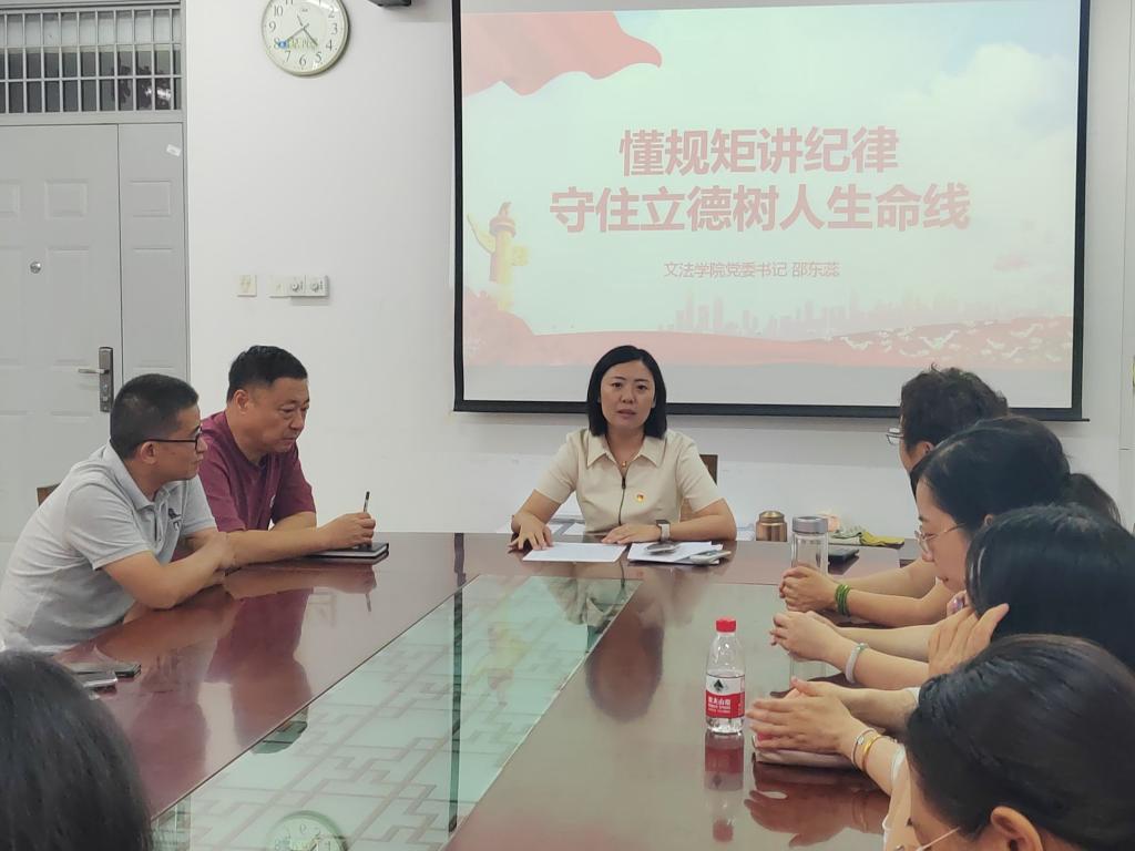参观结束后,学院党委书记邵东蕊结合所学所悟和学院实际,以《懂规矩讲纪律,守住立德树人生命线》为题讲专题纪律党课,深入解读了高校加强党的纪律建设的现实意义,并结合高校党员和党员干部的典型案例以案教学,指出典型案例是最好的教科书、也是最好的清醒剂,高校党员和党员干部唯有敬终如始,永不懈怠方可坚守初心,守牢底线,在一言一行中淬炼党性,强化师德。(撰稿:李佐阳)