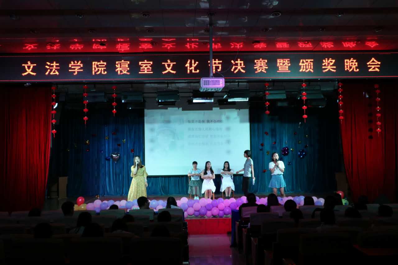 通过前期的初赛和复赛的角逐,共有5个寝室成功晋级了此次决赛。决赛采用分组挑战的赛制。各参赛寝室首先向评委和观众展示了精心制作的PPT或视频,对自己的寝室文化进行演绎或解读。随后的才艺展示环节更是进一步彰显了每一个寝室独特的文化,充分展示了我院学子丰富多彩的艺术修养和课余生活,整个活动现场精彩纷呈、高潮迭起。