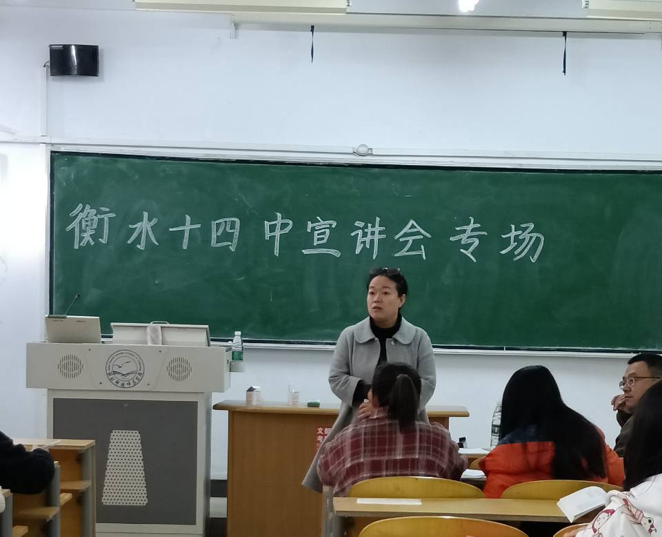 2020年11月1日上午9点,yl23411永利集团官网院在综合楼109教室举办“衡水市第十四中学专场宣讲会”,20多名毕业生参加了此次宣讲会。宣讲会上,衡水市第十四中学的校长首先介绍了学校的总体情况,衡水十四中是桃城区唯一一所重点国办高中,2016年跻身“全国百强中学”,办学水平位居河北省前列,同时对毕业生普遍关心的工资待遇和保险问题也进行了详细讲解。随后,每位毕业生做了十分钟的试讲,在试讲中自信从容,顺畅流利。校方领导和老师对毕业生的表现给予了高度肯定,并在讲课思路、板书设计等方面提出建议。最后,单位负责人告知毕业生及时关注面试结果,收到消息后再到学校进行最终面试。