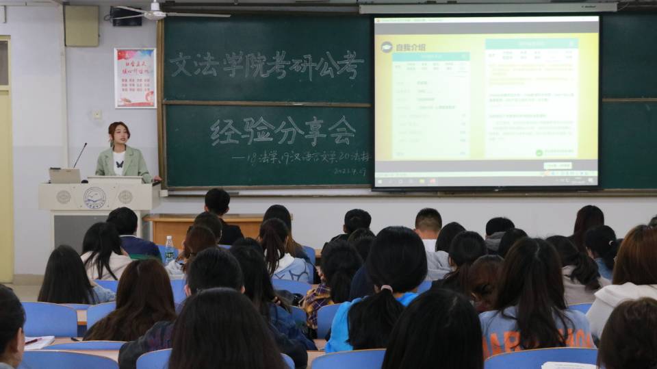 随后,受邀请的学生代表先后发言,与大家分享他们在考研、公考过程中宝贵经验,包括:如何选择学校、专业、岗位,以及复习中应该注意的问题和应试技巧。并结合自身情况介绍了复习过程中的心态调整、复习计划的制定及面试流程等,为备考的下届同学们提供了实战经验。
