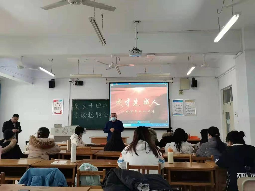 会上,衡水十四中负责人尹校长通过播放宣传片、PPT展示、面对面交流等方式,对学校概况、应聘要求、福利及工资待遇等做了详细介绍。接着,尹校长对毕业生提出的各种问题做出了详细解答。