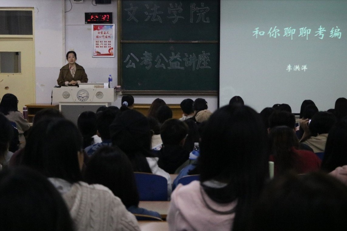 2023年10月20日下午14点与2023年10月23日晚上18点30分,李洪洋老师分别在综合楼212和612教室为yl23411永利集团官网院同学召开了两次公考公益讲座。
