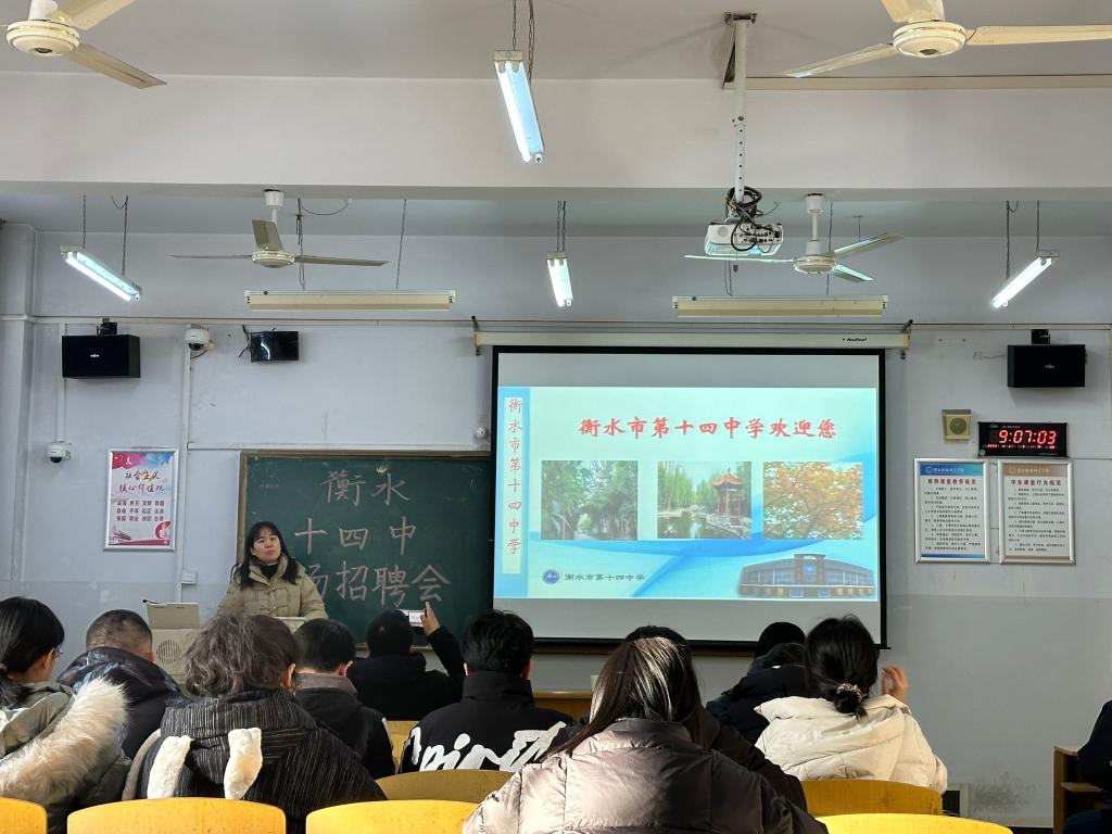 为缓解我院毕业生就业压力,我院与衡水市第十四中学建立了长期的友好合作关系,共同为毕业生与用人单位搭建了高效沟通的桥梁和高质量互选的平台。2023年12月27日,yl23411永利集团官网院举办了衡水市第十四中学专场招聘会。此次专场招聘会受到我院领导和老师的高度重视,李宝文书记、王慧院长、姜会老师和刘艾嘉老师莅临指导并给予应聘同学鼓励与支持。