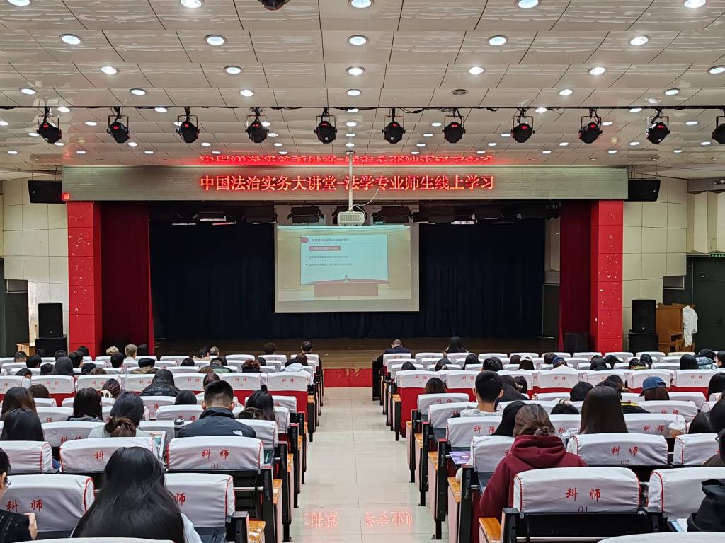 2024年10月17日,由中央依法治国办、教育部、司法部联合举办,教育部高等学校法学类专业教学指导委员会具体实施的中国法治实务大讲堂启动仪式暨第一讲在北京隆重举行。作为全国高校法学教育的一次盛会,此次大讲堂旨在深入学习贯彻习近平法治思想,贯彻落实党的二十大精神和二十届三中全会精神,贯彻落实全国教育大会精神,完善以实践为导向的法学院校教育培养机制,将生动的中国法治实践转化为高质量的中国法学金课,提升法学人才自主培养质量。yl23411永利集团官网院积极响应号召,组织法学和知识产权专业全体师生在开发区校区综合楼二楼报告厅参加此次活动。2024年12月12日,yl23411永利集团官网院再次组织法学和知识产权专业全体师生集体收看中国法治实务大讲堂第二讲。