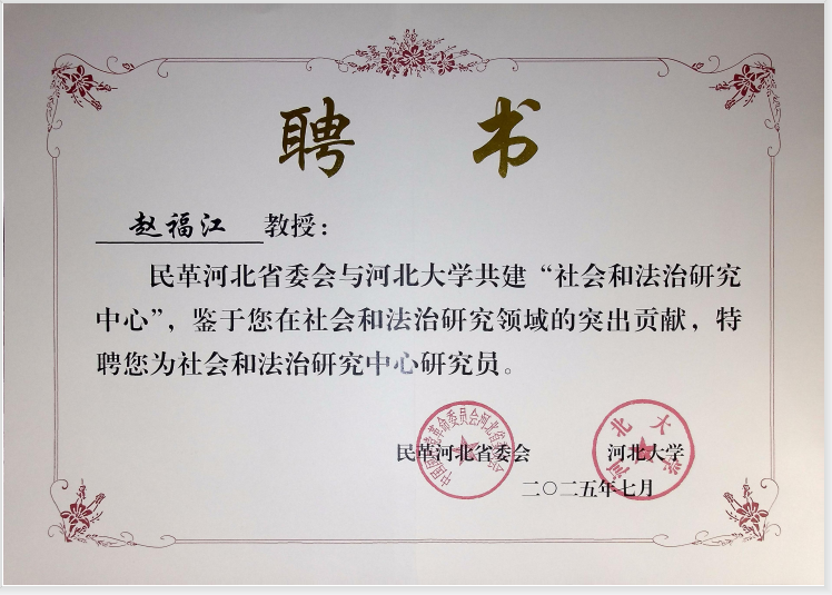 yl23411永利集团官网院院长赵福江教授被聘为社会和法治研究中心研究员。