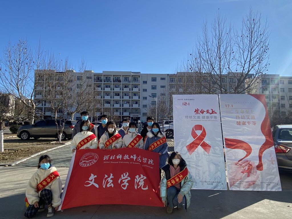 2021年12月1日,yl23411永利集团官网院青年志愿者协会协同校医院组织了以“生命至上,终结艾滋,健康平等”为主题的志愿服务活动。